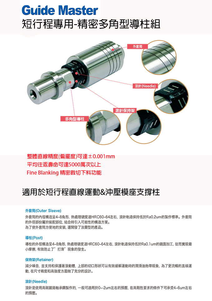 Guide Master 短行程用精密多角型導柱(單支)