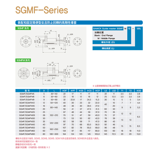 Guide Master短行程用精密多角型導柱(法蘭)