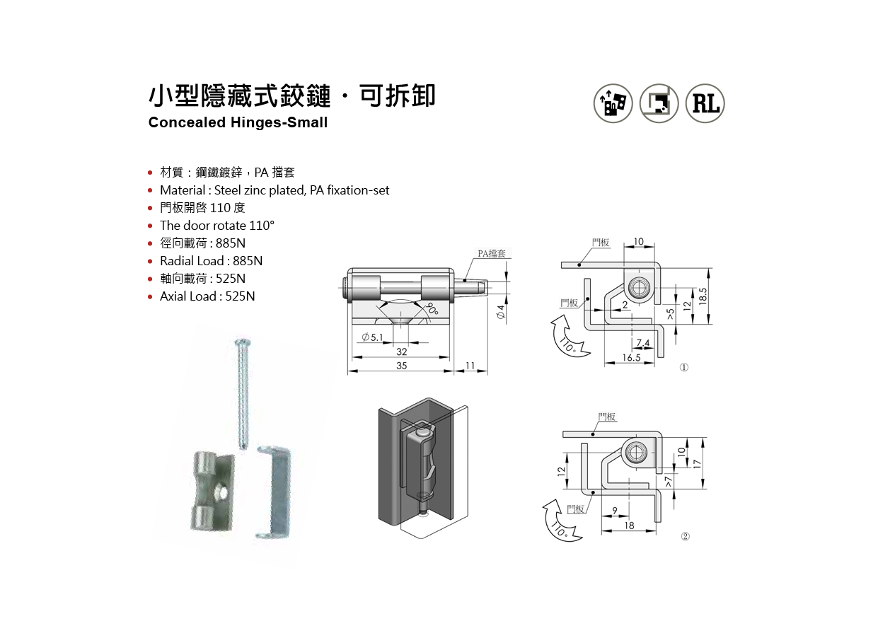 1-10-2-11 小型隱藏式鉸鏈.可拆卸