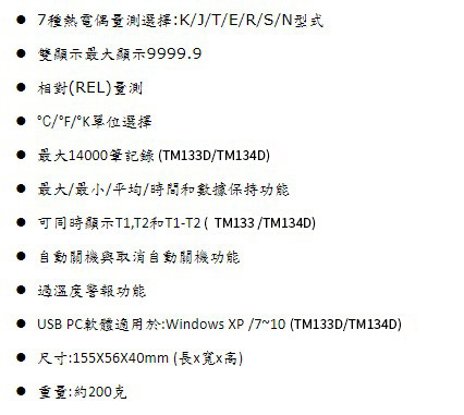 TM-130N/TM-132N K/J型雙輸入溫度錶