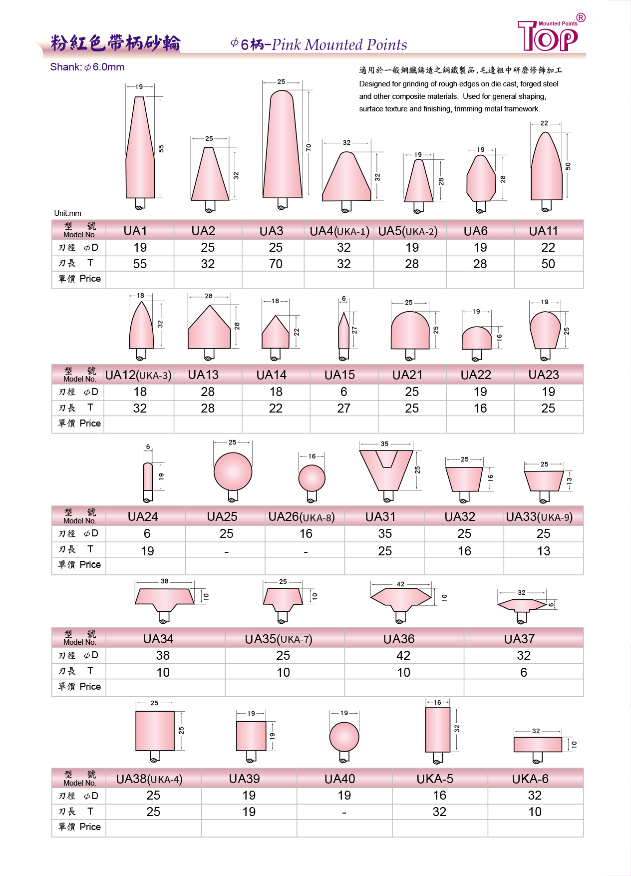 粉紅色帶柄砂輪 Ø6柄