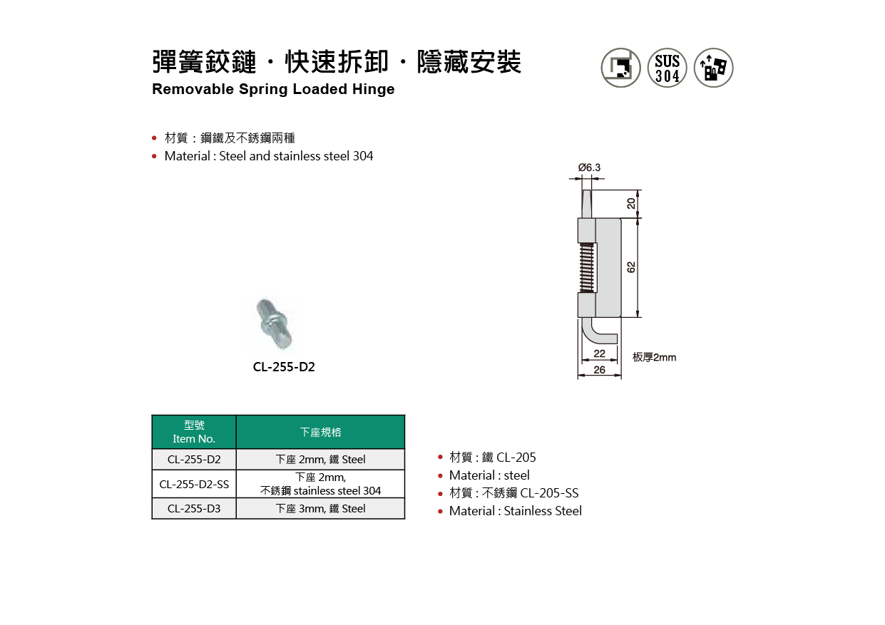 1-10-2-19 彈簧鉸鏈.快速拆卸.隱藏安裝
