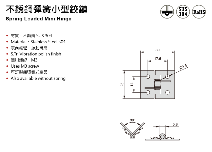 1-10-2-23 不銹鋼彈簧小型鉸鏈