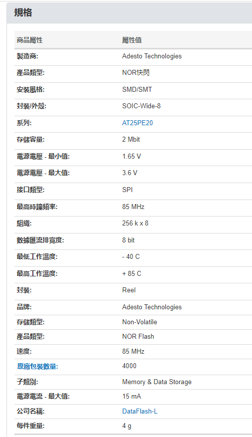 產品:AT25PE20-SSHN-T 記憶體 IC